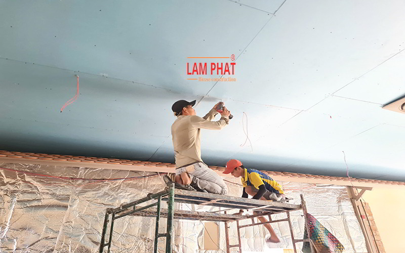 Xử lý mối nối tấm thạch cao thật kỹ lưỡng để tăng hiệu quả cách âm và tránh bị nứt tường về sau.